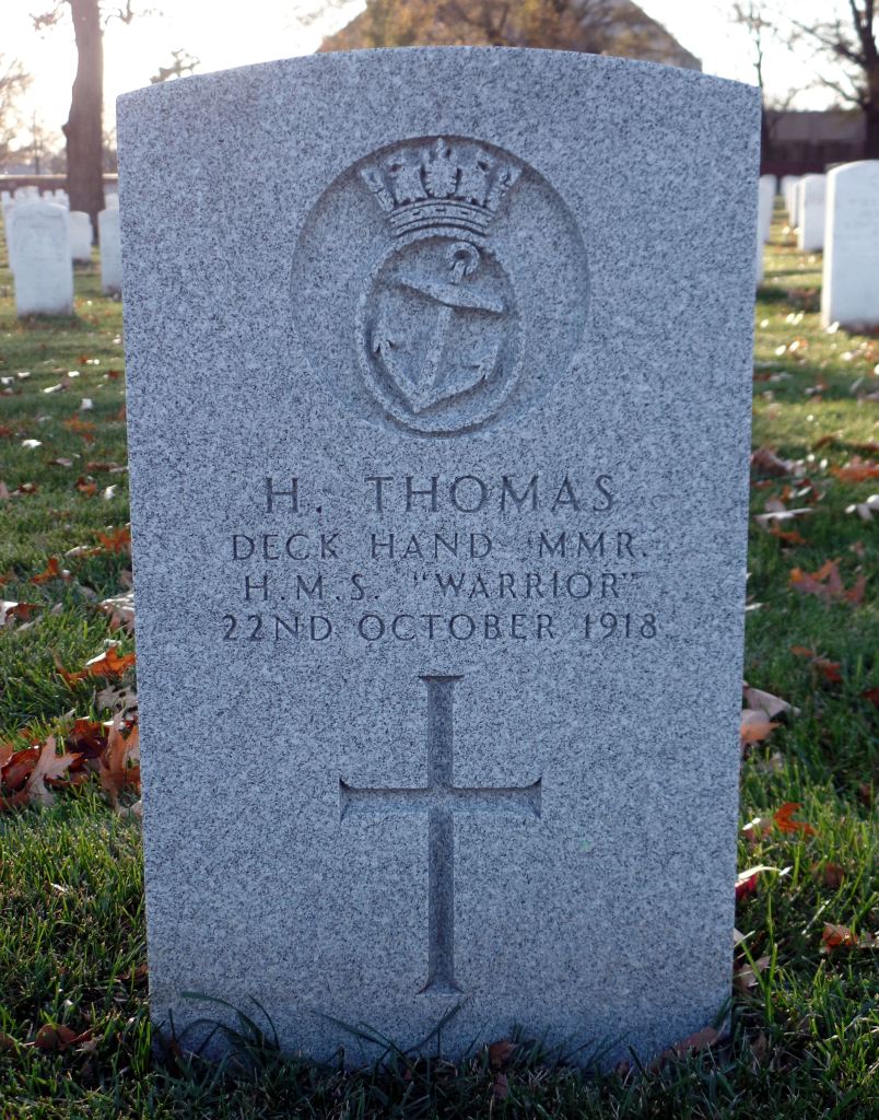 Herbert Thomas was born in 1887 at Liverpool. He became a merchant seaman; it is not known when he joined HMS Warrior.