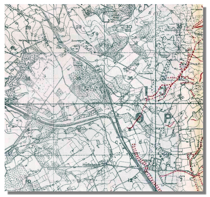 By 22 October the Regiment was in the area of Klein Zillebeke, where 7th Cavalry Brigade alternated with 6th Cavalry Brigade in the rudimentary trenches on the Zandevoorde Ridge. This position was held until 30 October when the strength of the enemy attack forced the squadrons on the ridge back to Klein Zillebeke. Two squadrons of The Blues were ordered to reinforce the Royal Dragoons, who held Hollebeke Chateau, south west of Klein Zillebeke. It was in this action Lieutenant Mackintosh was shot in the chest and severely wounded—one of 56 casualties from The Blues (three killed, 19 wounded and 34 missing).[6] He was evacuated to No.7 Stationary Hospital at Boulogne, where he was treated before being sent to hospital in England in mid-November.[7]