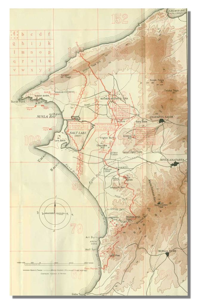 By the time of his arrival 2nd Royal Fusiliers had seen considerable action. Having landed at X Beach, Cape Helles on 25 April the Battalion suffered half of its strength killed and wounded in three days’ fighting. It was engaged in major actions throughout May and by 7 June had been reduced to only 2 officers and 278 men. Having been withdrawn to Lemnos on 15 July, the Battalion returned briefly to Cape Helles before landing at Suvla on 20 August, where 86th and 87th Brigades took part in the attack on Scimitar Hill the next day; the attack, the last major attack of the Gallipoli campaign, was unsuccessful and 2nd Royal Fusiliers dug in near Chocolate Hill.[3]