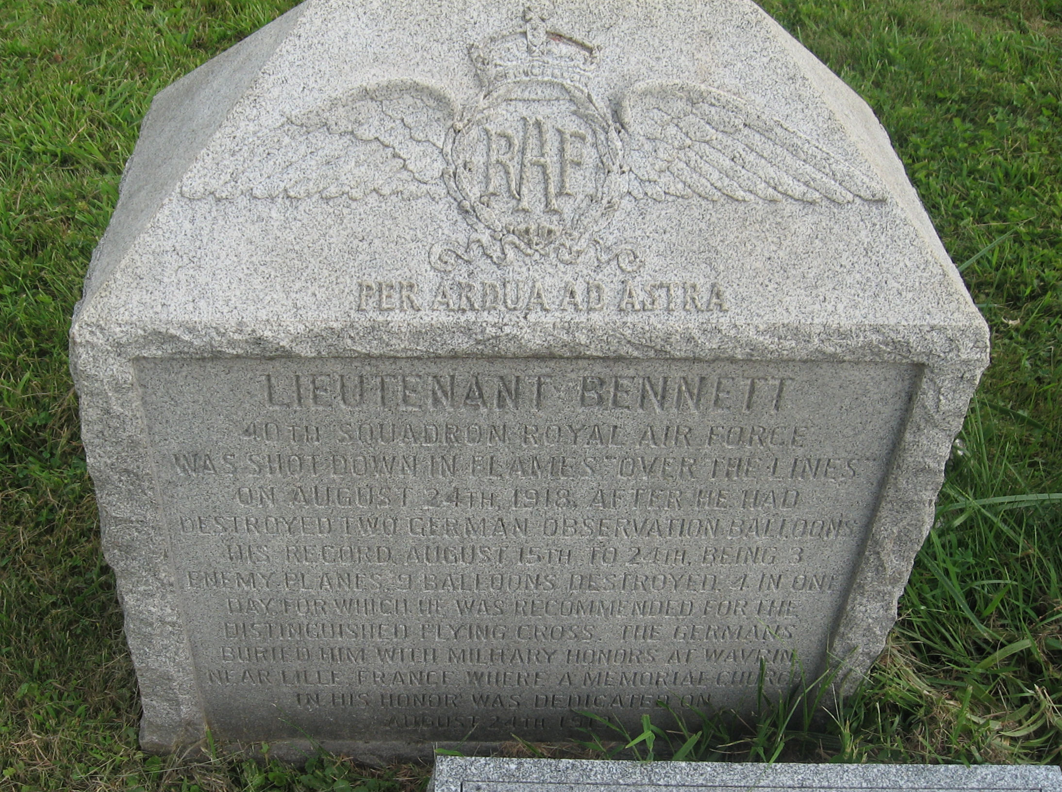 BURIED HIM WITH MILITARY HONORS AT WAVRIN,