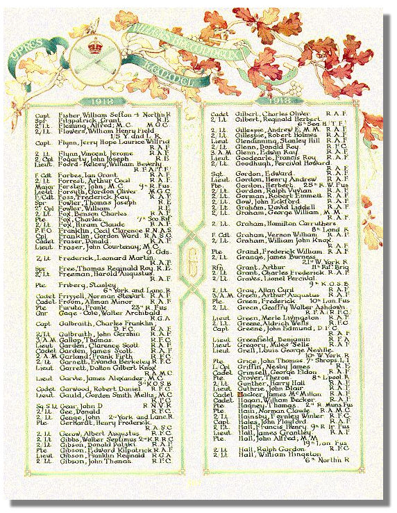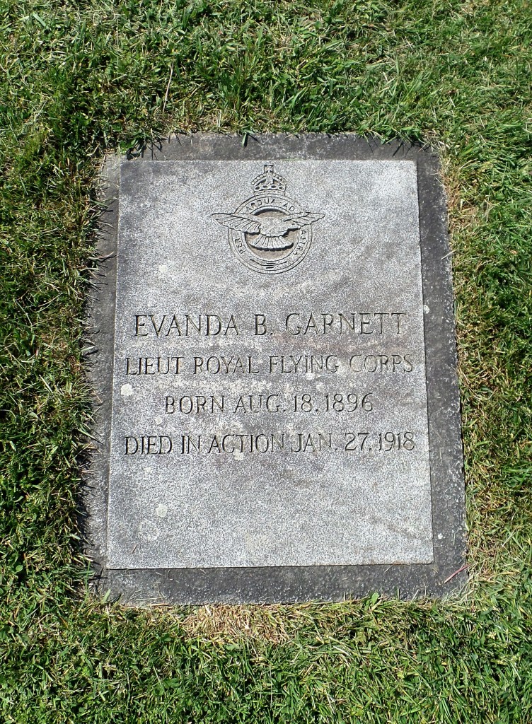 Second Lieutenant Garnett is commemorated on page 587 of the Canadian First World War Book of Remembrance; that page is displayed on 19 December. He is also commemorated on Newport’s First World War memorial at the City Hall, and on a memorial tablet at Roger’s High School dedicated on 6 September 1922 to the ten former pupils of the school who had died in the war.[9]