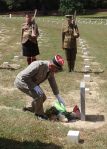 The French representative, Lieutenant Colonel Michel Comas, laying flowers at the grave