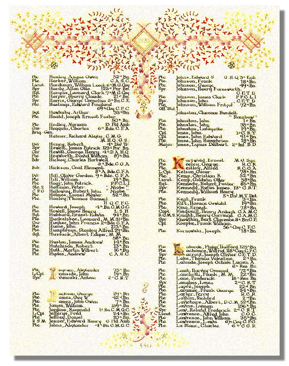 Gunner John Francis Hughes is commemorated on page 550 of the Canadian First World War Book of Remembrance; that page is displayed on 23 November. His service in France earned him the 1914-15 Star, British War Medal 1914-20 and Victory Medal; these and the memorial plaque and scroll were sent to his wife Florence in Notre-Dame-de-Grâce, Montreal. She and his mother also received the Memorial Cross.