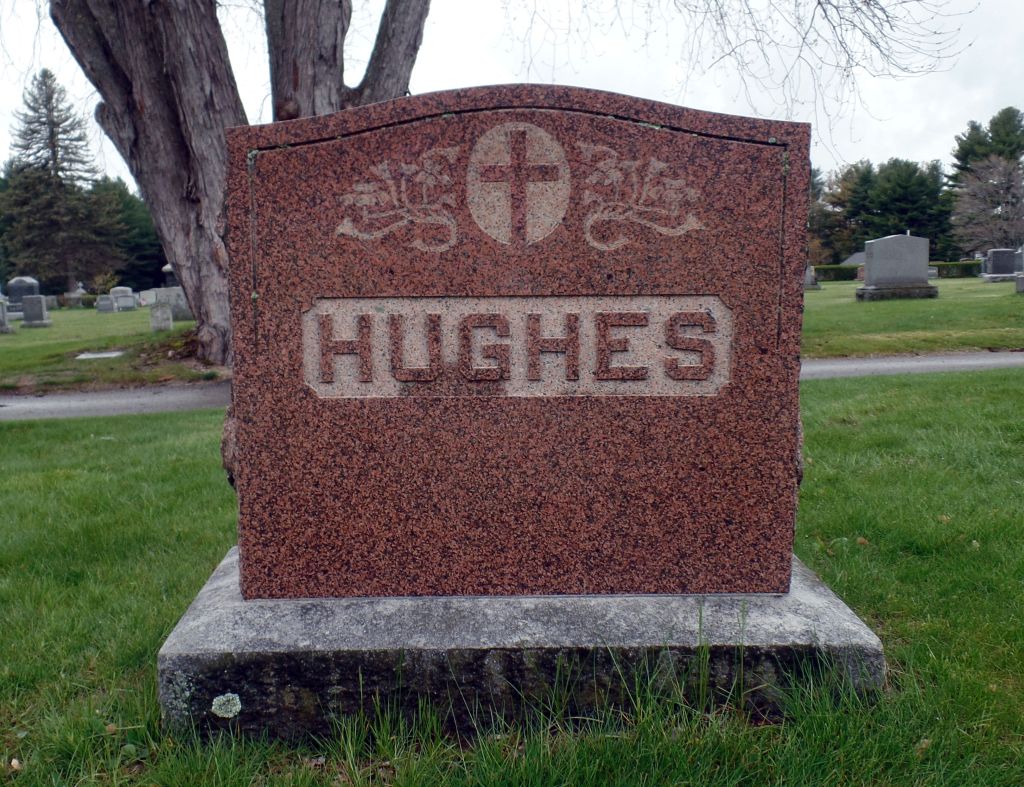 John Hughes died of acute endocarditis at the Prince of Wales Hospital, Montreal on 29 February 1920. His remains were returned to his family in New Hampshire and he was buried on 5 March in Saint Joseph’s New Cemetery, Bedford. His grave is located in the centre of the cemetery at Block G, Lot 36 and is marked with a large family memorial. Buried with him are his mother and father and two nephews. On 8 May 1920, his daughter, Joan Frances, was born in Notre-Dame-de-Grâce; she was baptized in St Philip’s Anglican Church. His wife and daughter left Canada in 1923 and visited her family in Scotland before returning to Canada the following year.