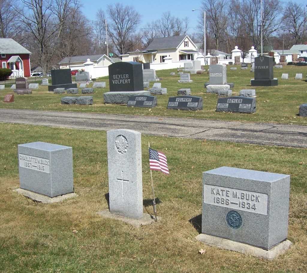 On 13 July 1917, Private Buck was admitted to Ponoka Asylum Hospital, Alberta, where he died of ‘exhaustion’ on 7 December 1917. His remains were returned home and he was buried in Old Oak Hill Cemetery, Plymouth. His grave is near the northern edge of the cemetery near Oakhill Avenue, in Lot 783, a family plot that also includes his mother and sister Kate. He is commemorated on a memorial cross at the nearby World War memorial, on the Marshall County memorial at the County Courthouse, and in the Indiana Gold Star Honor Roll.[2] He is commemorated also on page 209 of the Canadian First World War Book of Remembrance; that page is displayed on 11 and 12 May.