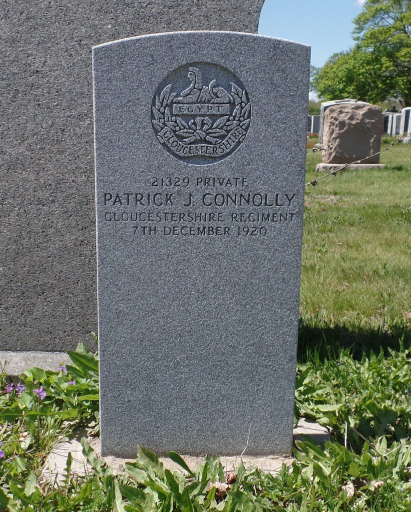 In 1915 Connolly returned to the United Kingdom, and on 18 May after disembarking at Avonmouth he travelled into Bristol and enlisted. He joined the 3rd (Reserve) Battalion, The Gloucestershire Regiment at Gravesend and was allocated the number 21329. At the end of his training he was posted to the Mediterranean to join the 7th (Service) Battalion, which had taken part in the Gallipoli landings as part of 39th Brigade, 13th (Western) Division. With his fellow reinforcements, he arrived at Mudros at the end of October and soon moved forward to join the depleted Battalion; the date of his arrival in Suvla is not known.