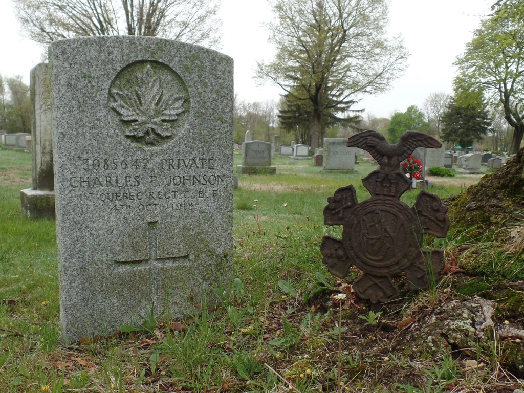 Private Charles Porter Johnson is commemorated on page 437 of the Canadian First World War Book of Remembrance; that page is displayed on 18 September. His memorial plaque and scroll and Memorial Cross were sent to his mother.