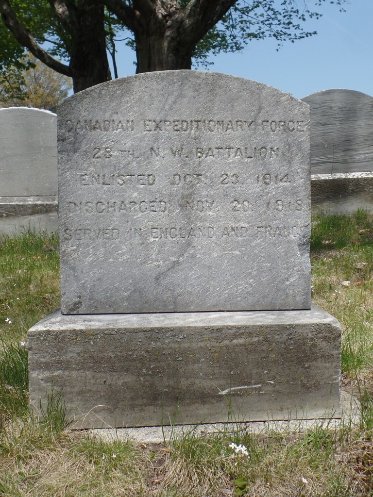 He enlisted at Montreal on 8 September 1918 and joined the 1st Depot Battalion, 1st Quebec Regiment at Guy Street Barracks; he was allocated the number 3091376. After only three weeks in uniform, Richardson reported sick on 30 September complaining of dizziness and headaches. Admitted to the Khaki League Convalescent Hospital, he was diagnosed as suffering from influenza. His medical record states that on admission he ‘did not seem very ill’, but by 3 October he had a nasty cough and was suffering nose bleeds. On 6 October he was diagnosed with pneumonia and his record for 11 October states that he ‘had a very bad night and died at 7.00a.m.’ His remains were returned home and he was buried in East Richford Cemetery with his parents.