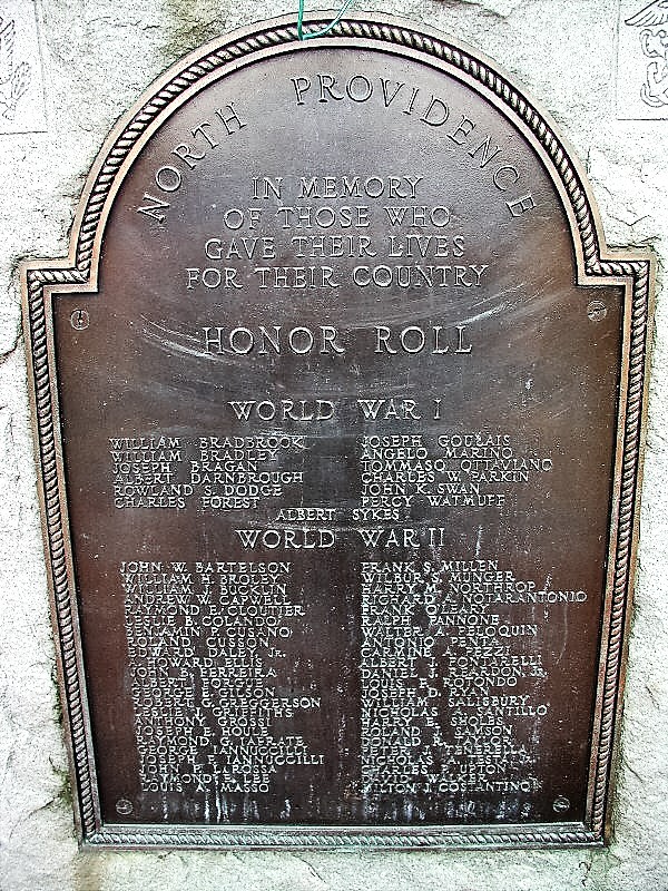 The North Providence war memorial is located at the town hall on Smith Street. It commemorates the men from North Providence who gave their lives in the two World Wars. Two other memorials commemorate those killed in Korea and Vietnam.