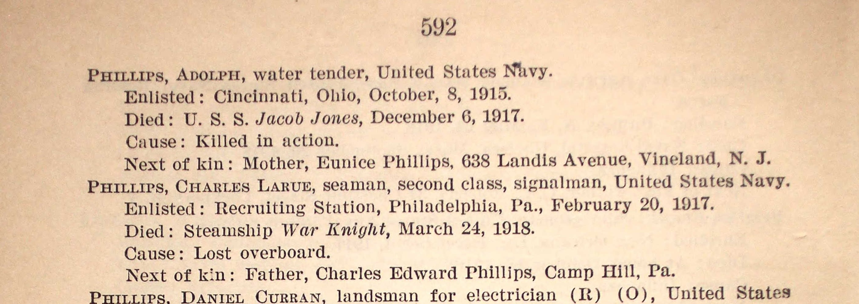 May 2, 2019March 8, 2023 ~ Nick Metcalfe Navy Department. (1920). Officers and Enlisted Men of the United States Navy Who Lost Their Lives During the World War, from April 6, 1917 to November 11, 1918. Washington: Government Printing Office. p 592.